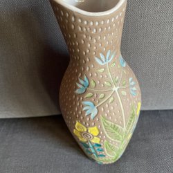 Broderad tavla med ett fång syrener i lila.Handarbetet köpt i Köpenhamn på 70-talet från kända Clara Waever. Sytt av min mamma.