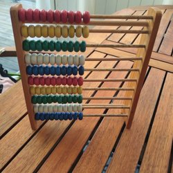 Färgglad kulram i trä för barn. Perfekt för att lära sig räkna och utveckla finmotoriken. Stativet är rött och formad som en raket.