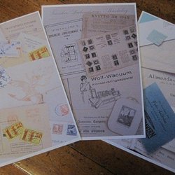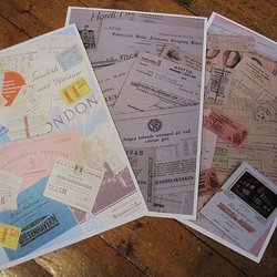Ett paket med scrapbooking papper i olika mönster. Papperet har motiv av rosor, noter, vinglas och par.