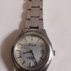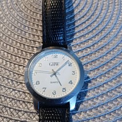 Säljer ett armbandsur från Michael Laudrup. Klockan har en vit urtavla med tre mindre visare och en svart läderarmband. Boetten är tillverkad av rostfritt stål. Klockan är vattentät.
