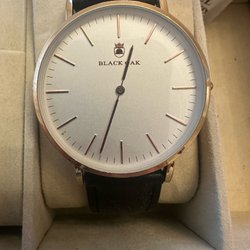 Klocka med svart läderarmband