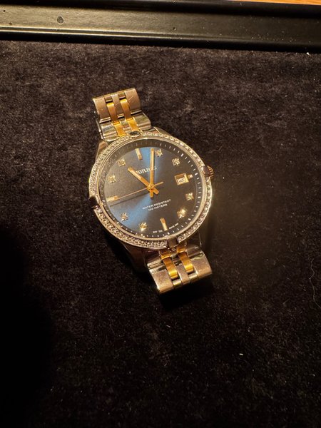 Elegant Morris damklocka med strassinfattning runt urtavlan. Klockan är vattenresistent 100 meter. Stilren design som passar till både vardag och fest. Tyvärr enbart bara klocka. Inga extra länkar, liten i storleken