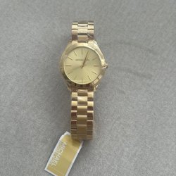 Säljer en Michael Kors damklocka i roséguld. Klockan har en quartz urverk och ett armband i rostfritt stål. Perfekt för den som söker en stilren och elegant accessoar.