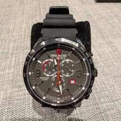 Svart Bulova herrklocka med datumvisning och kronograffunktion. Klockan har en svart urtavla med silverfärgade detaljer. Boetten och armbandet är tillverkade i rostfritt stål.