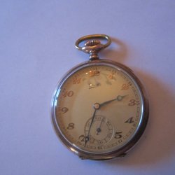Ett vackert fickur i silver. Uret har en detaljerad urtavla med röda siffror och en separat sekundvisare. Boetten är dekorerad med ett blommönster. Inuti finns ett urverk med många kugghjul och detaljer. På insidan av boetten finns stämplar som indikerar "Galonne Déposé" och "0.800" silverhalt.