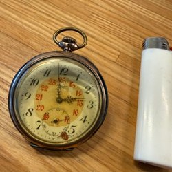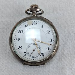 Fickur i silver med vit urtavla och arabiska siffror. Uret har en sub-sekundvisare. Boetten är tillverkad av silver. Urverket är synligt genom det öppna baklocket.