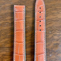 Läderband med krokodil mönster. Bredd vid infästning 18mm. Bredd vid spännet 16mm. Bandet är oanvänt