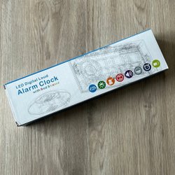 Digital väckarklocka med LED-display. Den visar tid, datum, veckodag och temperatur. Klockan har dubbla alarm och snooze-funktion. Kan ställas in på 12/24 timmars format. Drivs via USB (adapter ingår ej) och har ett batteri för backup vid strömavbrott. Har automatisk eller manuell dimmning.