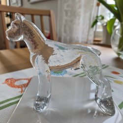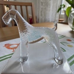 Tre glasfåglar. En av fåglarna är märkt "Konst Glashyttan Urshult".
