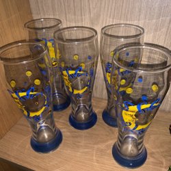 Glas för dryck, som verkar vara handblåsta. De är cirka 20 och 22,5 cm höga.