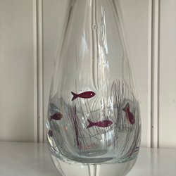 Flaska med löv , 19cm hög, med ett nagg vid öppningen, se bild 4
