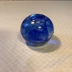 Blå vas i glas. Samma serie som vasen i annan annons . Munblåst av Hans- christian wagner i Björkshult
