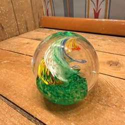 En gammal och mycket vacker brevpress i glas. Ca 10 cm i diameter. Vikt 805g.