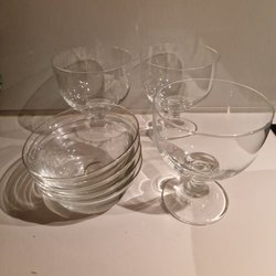 Upplägningsskål och en skål i pressglas. Enl.bilder.