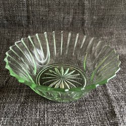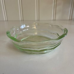 En vacker skål i uranglas. Svagt flourocerande vid belyst med 365 nm.