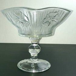 Fruktskål i glas med silverfärgad fot. Höjd ca 10 cm, diameter ca 19 cm.