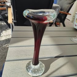En vacker vas med bubblor i glaset och vita detaljer.