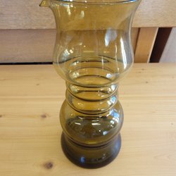 Retro vas i brun grönt glas. Hel och fin. Ca 19cm hög.