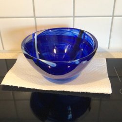 Dekorativ vas i glas med blå detaljer. Design Barski, swirl , h 15 o mind