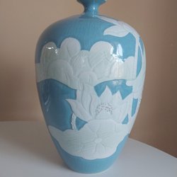 Vacker vas med blommönster. Märkt med K1796.