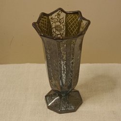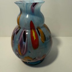 En vacker vas i glas med ett fint mönster.