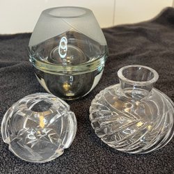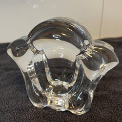 Vacker blå glasvas med unikt mönster. Perfekt som inredningsdetalj eller för att visa upp dina favoritblommor. Höjd: 10 cm, Bredd: 8 cm.