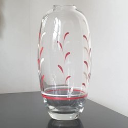 Felfri vas i brunt glas med dekoration av ax. 21 cm hög och 6 cm i diameter upptill.