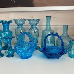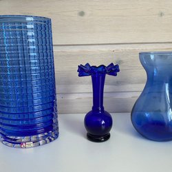 Två gröna vaser möjligtvis från Fåglaviks glasbruk. Normalt bruksslitage. Mindre skador på kanterna och beläggningar syns på bilderna.