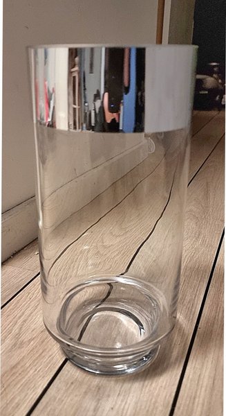 Stilfull Vacker Design glasvas med cromad silverkant