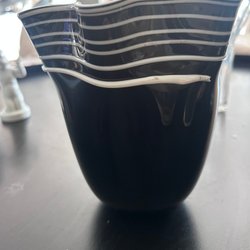 En Nästan "Näsduksvas" handblåst med slipat puntelmärke. Perfekt till vårens tulpaner. 17 cm hög, upptill 19,5 cm i diameter, 9 cm i diameter. Har några små små prickar som ser ut som rost, annars inga nagg eller defekter.