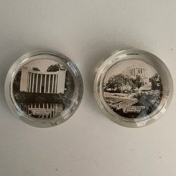 Vacker brevpress i glas med gult och vitt mönster som en blomma