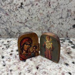 En ikon med motiv av Maria och Jesusbarnet. Mått 15 x 10 cm. I mycket fint skick.