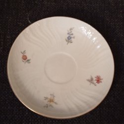 En söt sockerskål från Karlskrona. Den har ett vackert mönster i rött och guld.