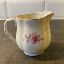 Vit tekanna från ALP Lidköping med dekorativa detaljer i guld och lila. Inga skador - fint skick