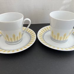 11stycken Karlskrona koppar med 12stycken tillhörande fat. Kopparna och faten har en elegant design med blommönster och guldkant.