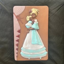 Elbogen Blomsterflicka i blå klänning med blont hår. Höjd ca 14cm. Signerad B.J. och Chris.