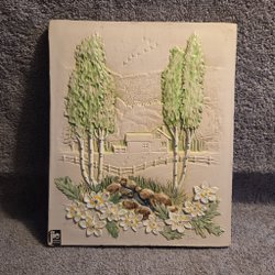 En keramikplatta märkt med jie och Sweden och 846 på baksidan. Dekorativ platta med blommor.