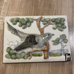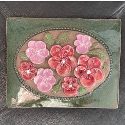 Väggplatta från Jie Gantofta. Plattan har ett motiv av blommor och gräs i relief. Tillverkad i Sverige.