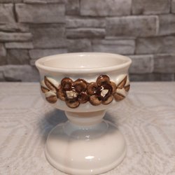 Lysestage med plads til tre lys. Den er dekoreret med grønne blade Og lilla blomster