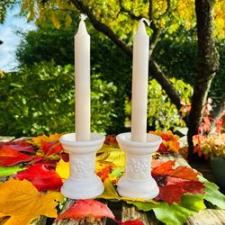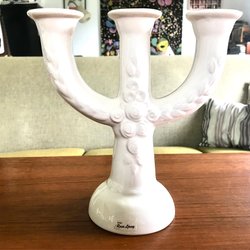 Rosa Ljung. Två vita ljusstakar 2 armar.