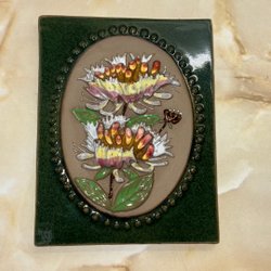 En dekorativ väggtavla med motiv av ett par omgivna av blommor.