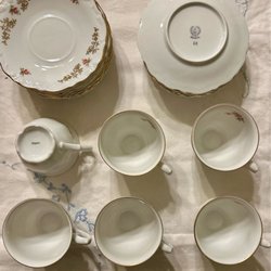 Teservis set från Bavaria Gareis, Tyskland. En tekanna, en gräddkanna, en sockerskål, en kopp med fat.