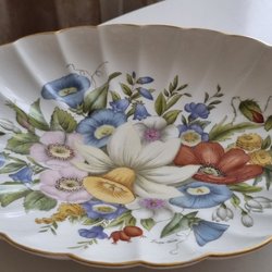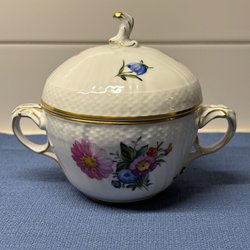 Royal Copenhagen skål med guldkant och blommor. Märkt med Royal Copenhagen och Christers namn.