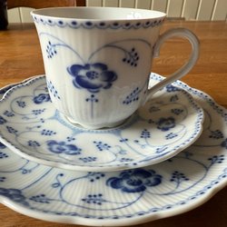 Fint bruksskick. Kan finns lättare spår av användning. Kan finns enstaka fel från tillverkning (prickar under glasyren, några prickar saknad färg eller glasyr). Krackelering kan finnas på äldre glaserat porslin.