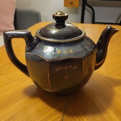 Tekanna i fint skick. Tunstall med klassiserande dekor i vitt mot blå fond, tekanna