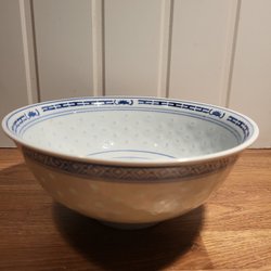 Fruktfat med färgglatt mönster. Märkt "GERMAN 438" undertill.