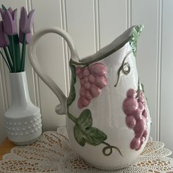 Stor Blå kanna med blommor och fåglar på.