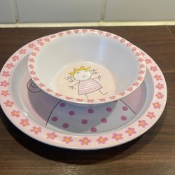 En söt liten ”Fars Kopp” med tillhörande fat. Koppen och fatet är dekorerade med guld detaljer.