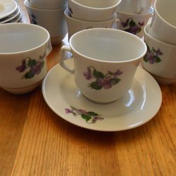 Set med koppar och fat. Tillverkad i Kina.