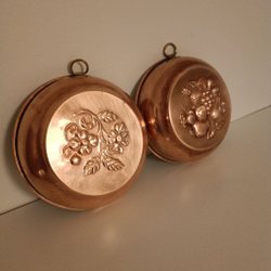 Set med kopparformar. Perfekt för matlagning eller att hänga på väggen, de har alla öglor.